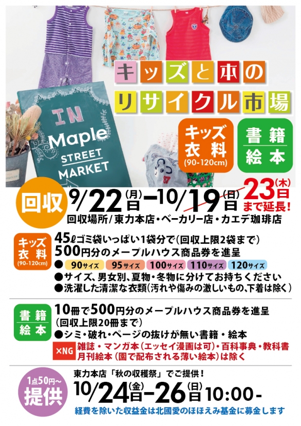 今年もキッズの衣料品と本のリサイクルイベントを開催します!