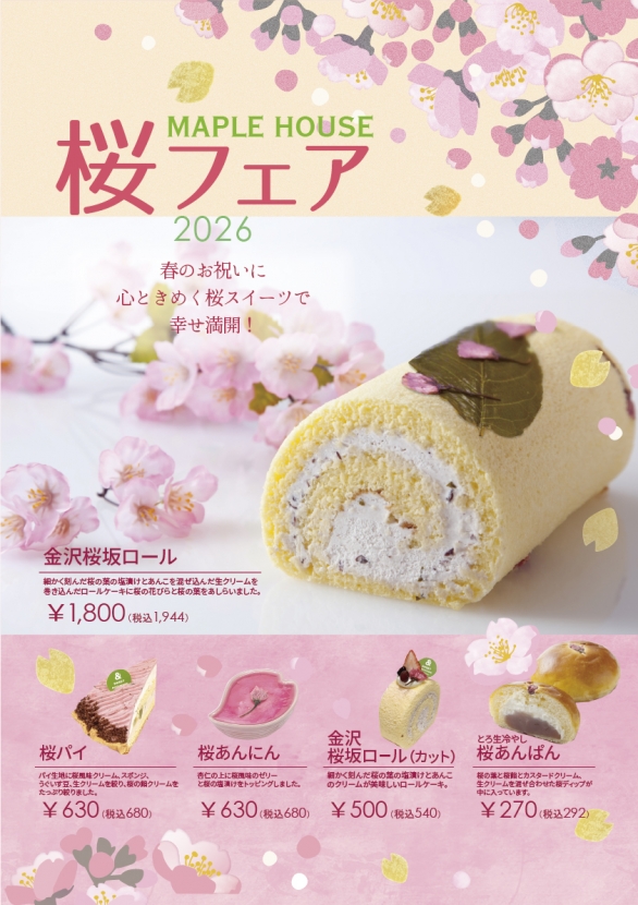 毎年人気の「桜坂ロール」や、桜感満載の「桜パイ」など、見た目も可愛い「ときめき」が詰まったラインナップをご用意しました。一口食べれば、きっと幸せな気持ちで満たされるはず。